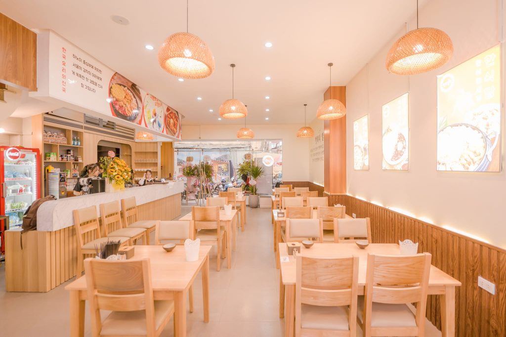 - Phong cách Hàn Quốc: Trang trí với những chi tiết như bảng menu chữ Hàn, hình ảnh các món ăn, và âm nhạc K-pop làm nền.