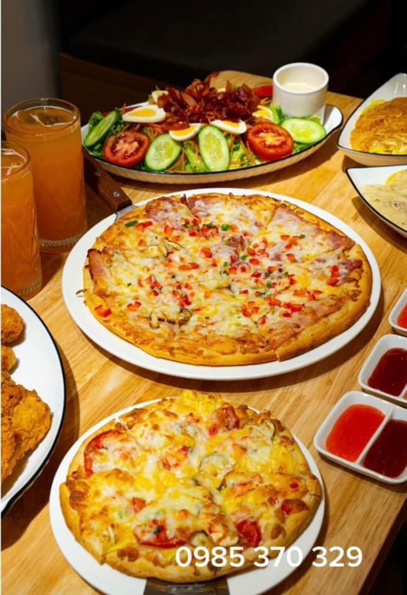 Pizza tại Pizza Ông Tây được làm từ đế bánh tươi, nướng giòn rụm, cùng các loại topping phong phú: