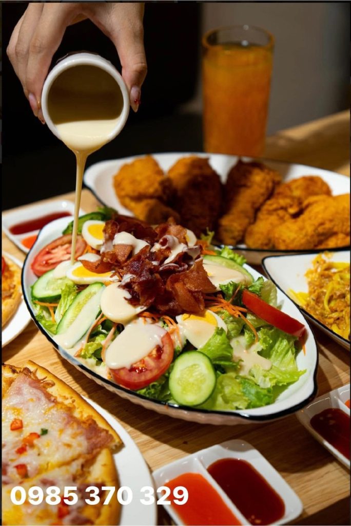- Salad Caesar: Tươi mát với rau xà lách, gà nướng và sốt Caesar đặc trưng.